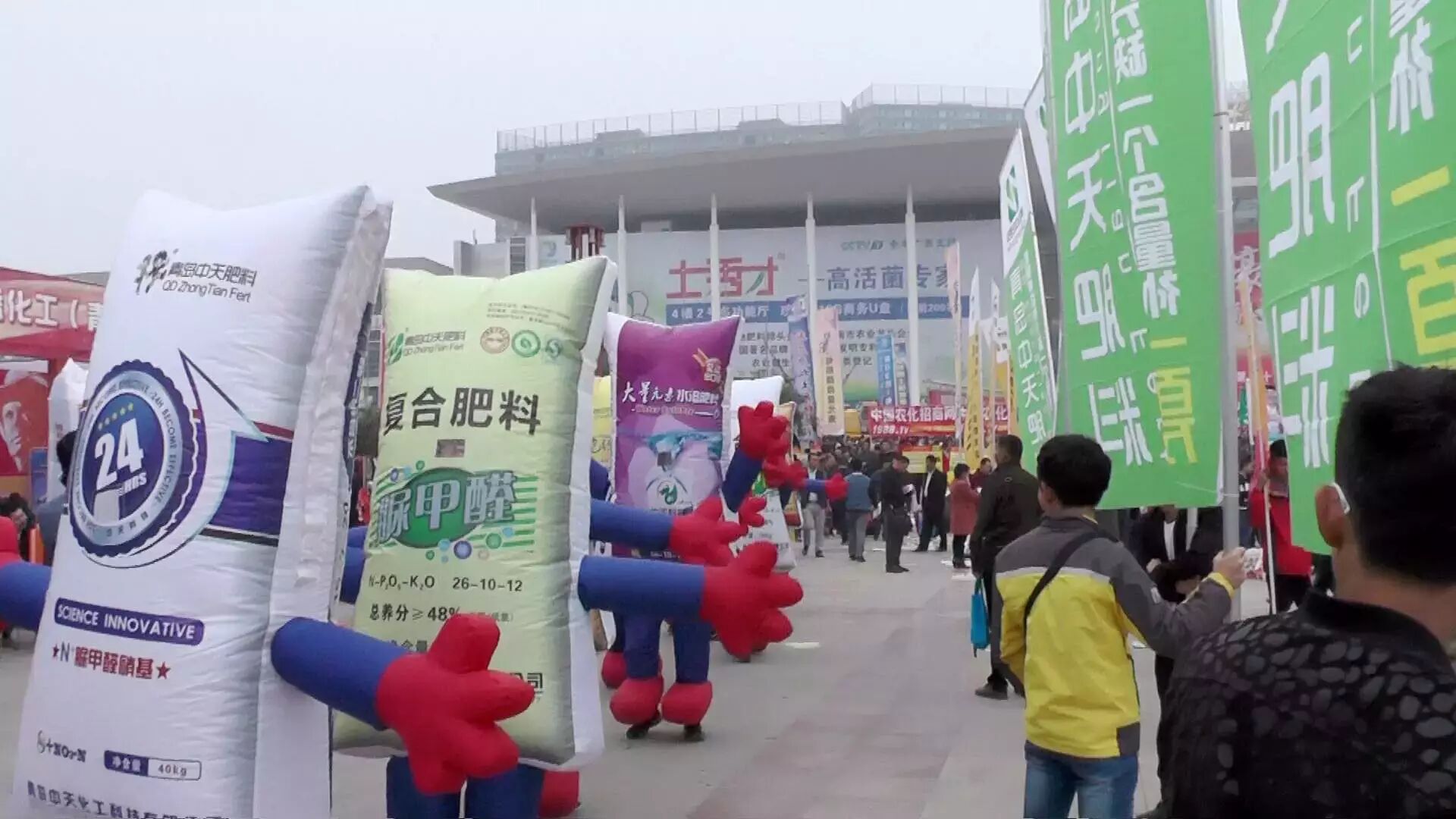 青岛中天肥料位于“双交会”主广场西侧,庞大的旗阵与气模展示几乎占据了整个广场,参会人员的目光被深深吸引,人们纷纷驻足观看并讨论着各个气模身上的肥料图样。
