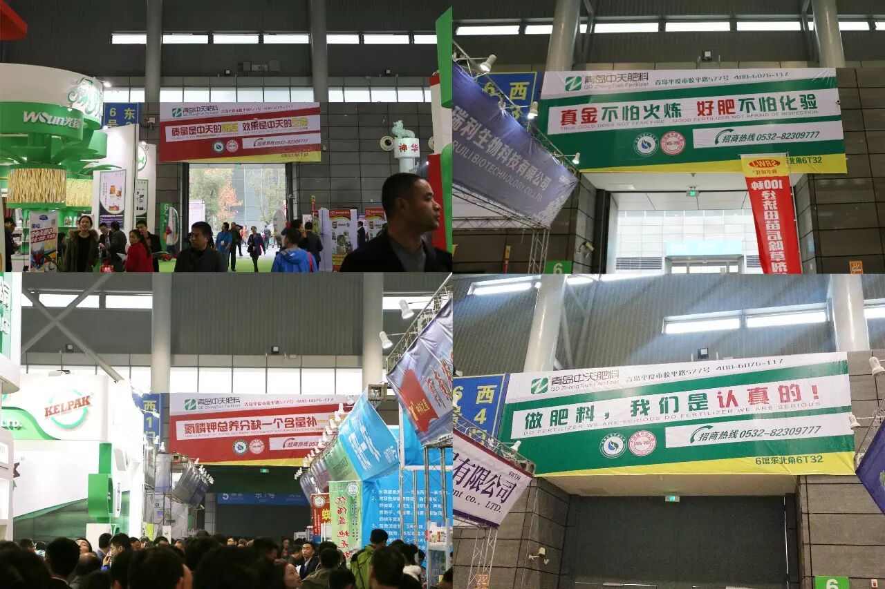 馆内各通道大门上方均统一悬挂青岛中天的经营理念广告。“我在X号门的青岛中天肥料广告下”成了接头的参观者们最常说的一句话。