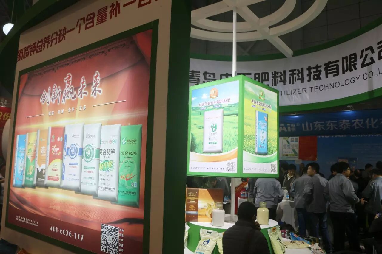 展会一开始,青岛中天肥料的展位前便聚集了来自天南地北的大量客商。